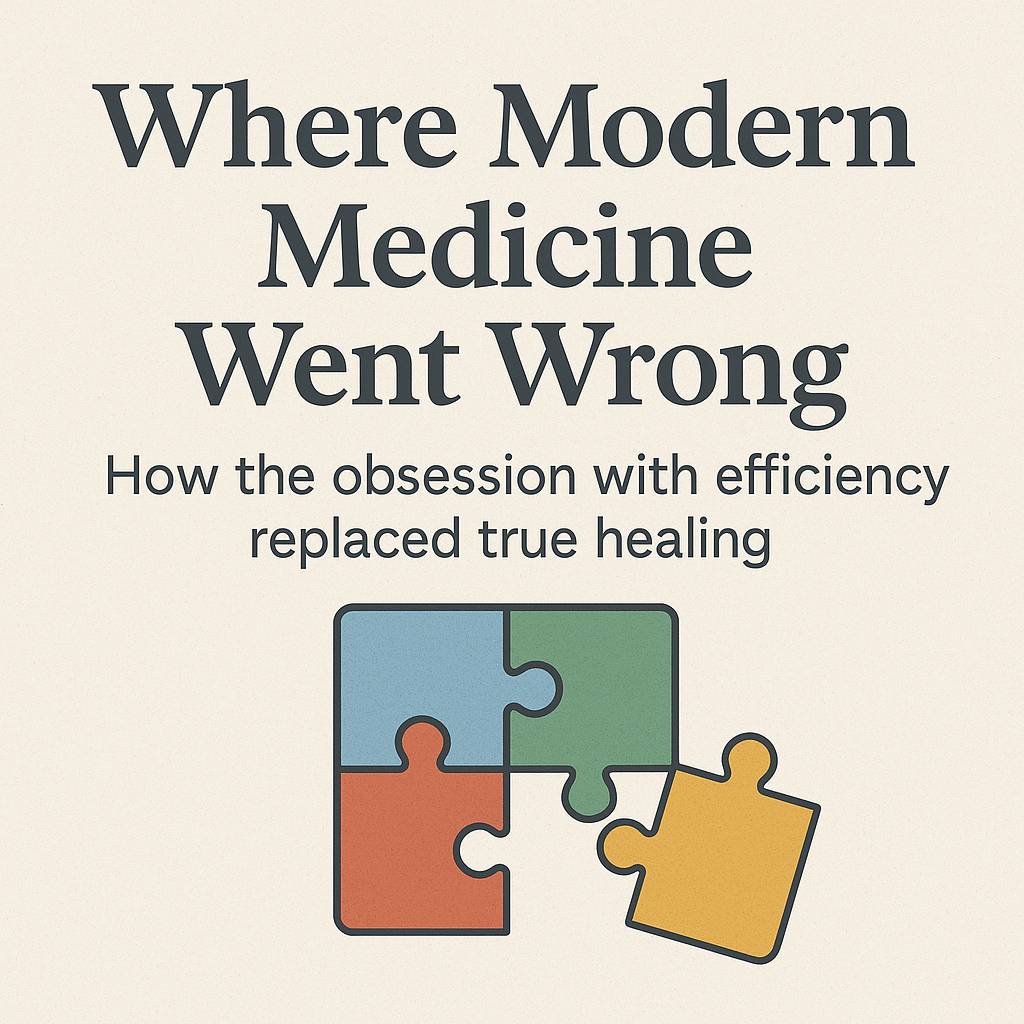 Efficiency Over Healing: The Hidden Flaw in Modern Medicine Modern medicine has achieved incredible things: it’s given us emergency care, surgeries, antibiotics, and life-saving technologies. But when it comes to the everyday reality of chronic illness, pain, fatigue, anxiety, and burnout, it’s failing us. We live in an age where medicine has become highly efficient, yet people are sicker, more stressed, and more disconnected from their bodies than ever. The system is brilliant at treating...