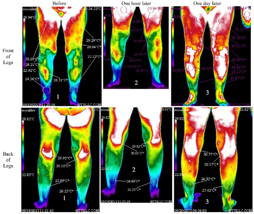 The following is are comparative thermal images before (1), after one hour (2) and after one day (3) of grounding